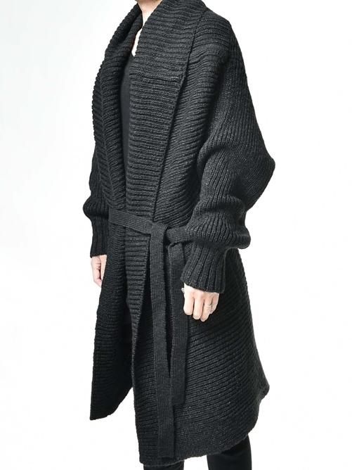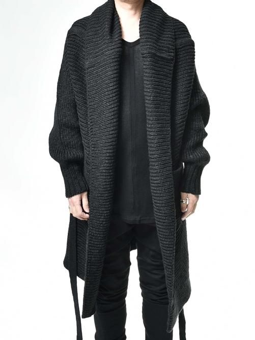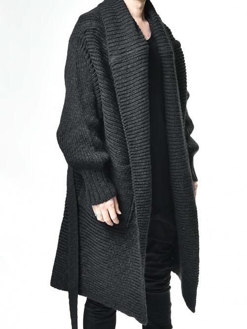 ■独特の形状を取り入れた変形のロングニットで、ネック周りから裾にかけて落ち感のあるドレープを表現。