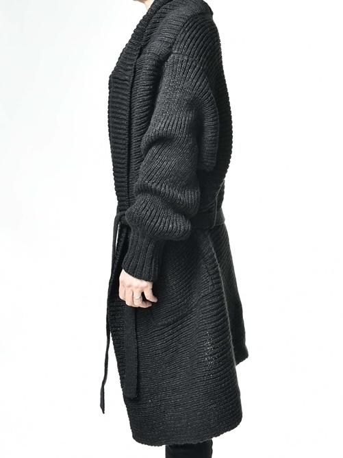 ■ざっくりと編み立てたアルパカウールニットを使用。ライトアウターの上からも羽織って頂けるボリューム感で、ヘビーアウタークラスの重厚感と保温性を兼ね備えています。