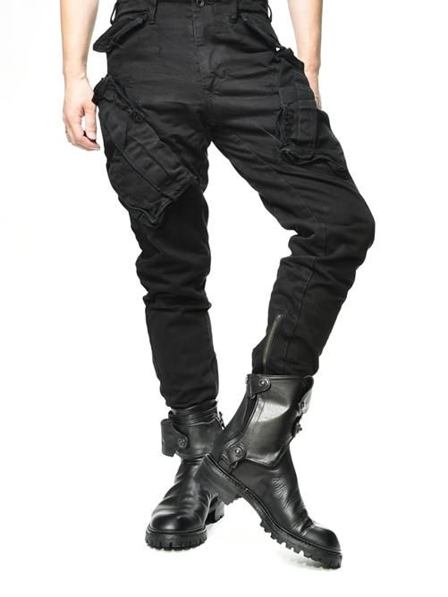 JULIUS Damaged Cargo Denim -BLACK- 767PAM8-BK