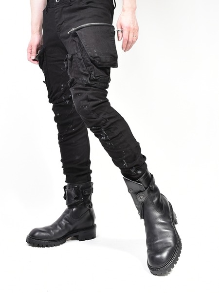 JULIUS DAMAGE PAINTED CARGO SKINNY DENIMS 807PAM6-BK