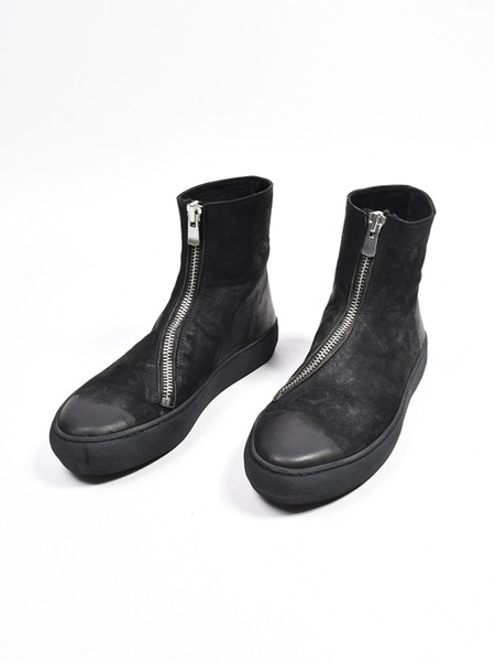 ■アッパーに配置した大胆なファスナー使いが視覚的に強烈なインパクトを与えています。