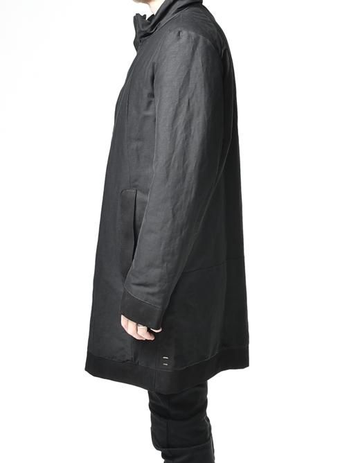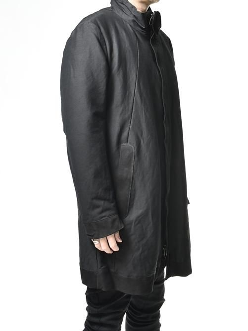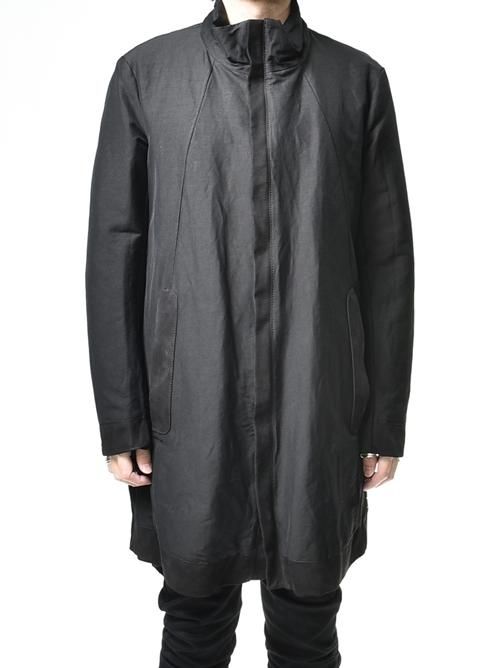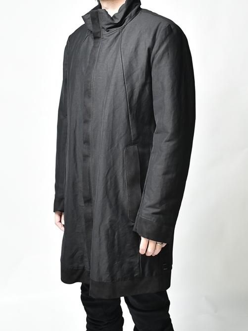 ■カジュアルライクになりがちなコットンポリエステル素材のロングコートをモードな仕上がりに昇華させた見事な作品で、この絶妙なバランスは、まさにD.B だからこそ成せる業