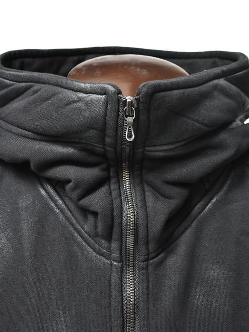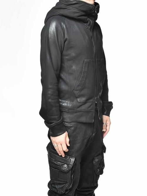 ■生地の表面に激しいコーティングを施すことでレザークラスの重厚感が加わり、通常の裏毛パーカーとは一線を画する圧倒的存在感を放っています。