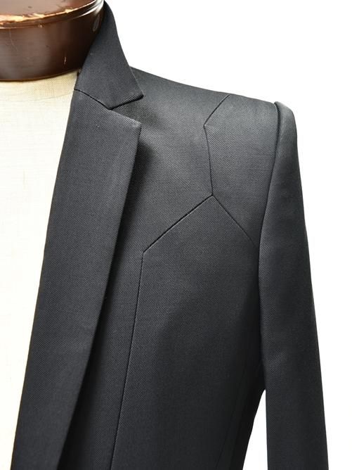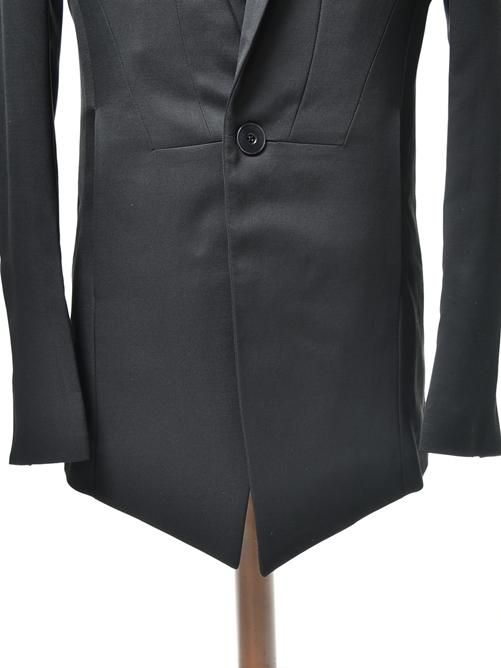 ■特徴的な前下がりの着丈や、可動域を広げた深いセンターベンツなど、一見シンプルながらも、ユリウスならではの仕様が随所に散りばめられています。