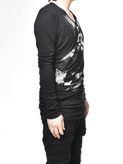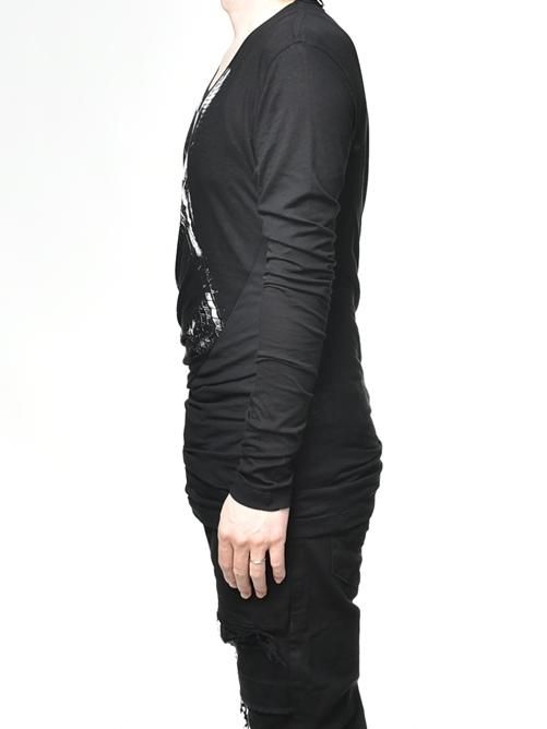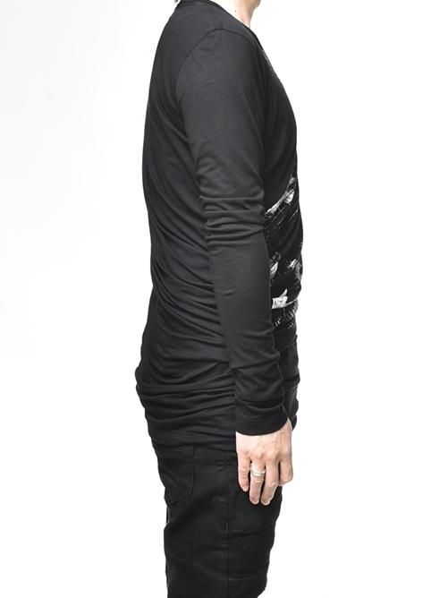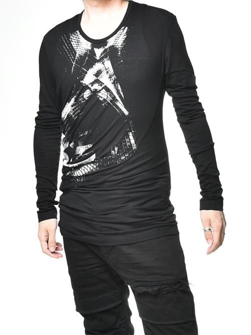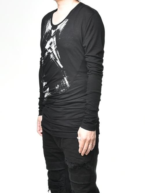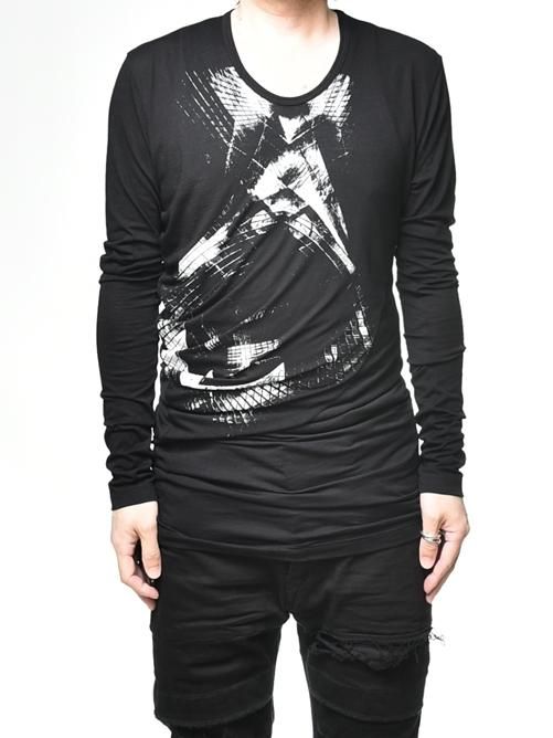 ■上着を羽織るシーズンはレイヤードで重宝し、抜群の個性を放つドレーピングプリントは、インナー使いでもその存在感を存分に発揮してくれます。